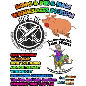 Cure those mid-week blues with some fun live music, delicious food, and drink specials! Every Wednesday Hops & Pie welcomes The One And Only Jon Ham to their award-winning from 5-7:30. $5 pours for beer club members, and canned beverage specials too!